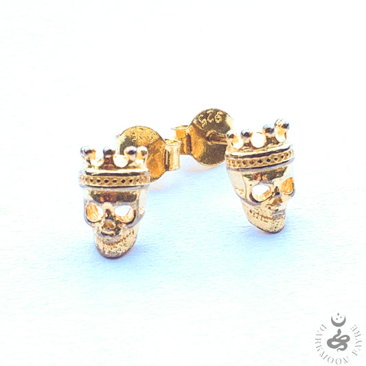 Crowned Skull Stud Earrings In 9ct Yellow Gold Vermeil