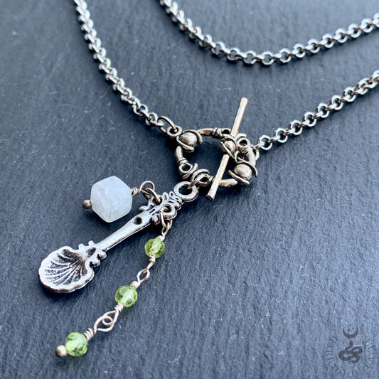 Absinthe Ritual Green Fairy Necklace With Peridot And Quartz "sugar cubes" In Silver
