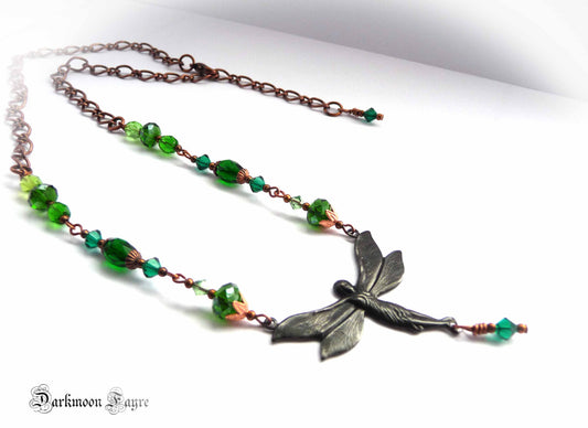 Absinthe Fairy Necklace. Ombré Green Fire Polished Czech Glass, Swarovski Crystals, Antiqued Copper.