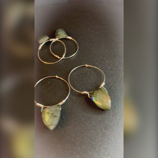 925 Sterling Silver Labradorite Tooth Earrings Hand Forged Hoop Ear-wires