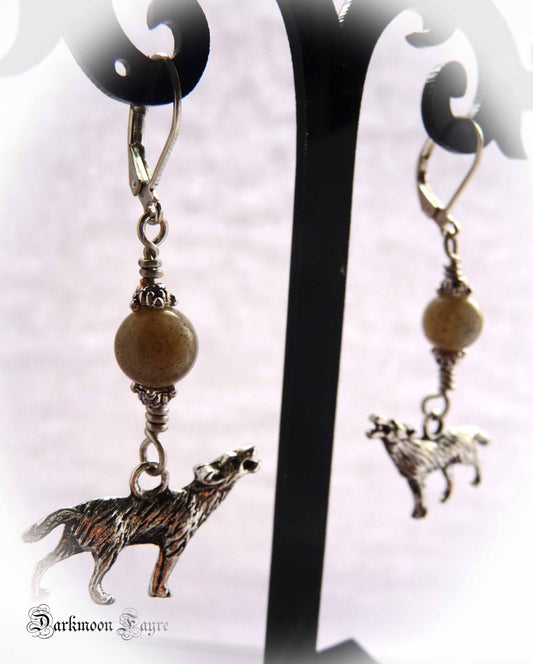 Canis Lupus & Labradorite Full Moon Earrings. Wolf/ Werewolf. For Fans of Supernatural Fairy-Tales. Spirit Animal. Silver.