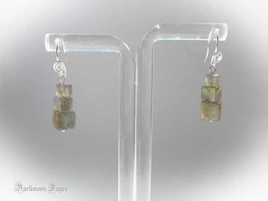 Labradorite Cube Earrings. All 925 Sterling Silver. Hand Forged Spiral Ear-wires