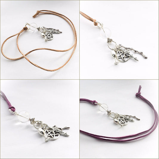 Fortune Teller's Necklace. Tarot Suites Charms & Natural Quartz Crystal “Ball”.