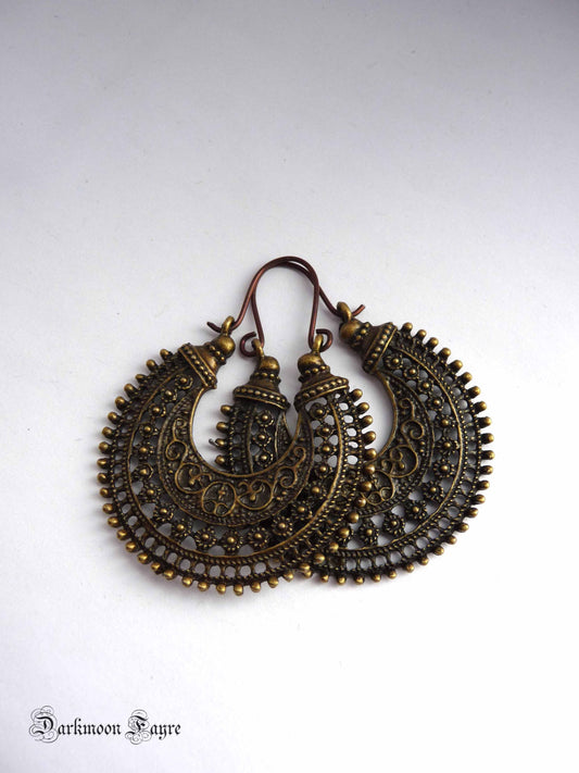 トライバル ボヘミアン フープ。低アレルギー性ニオブイヤーワイヤー。バーディグリブロンズ。ジプシーイヤリング